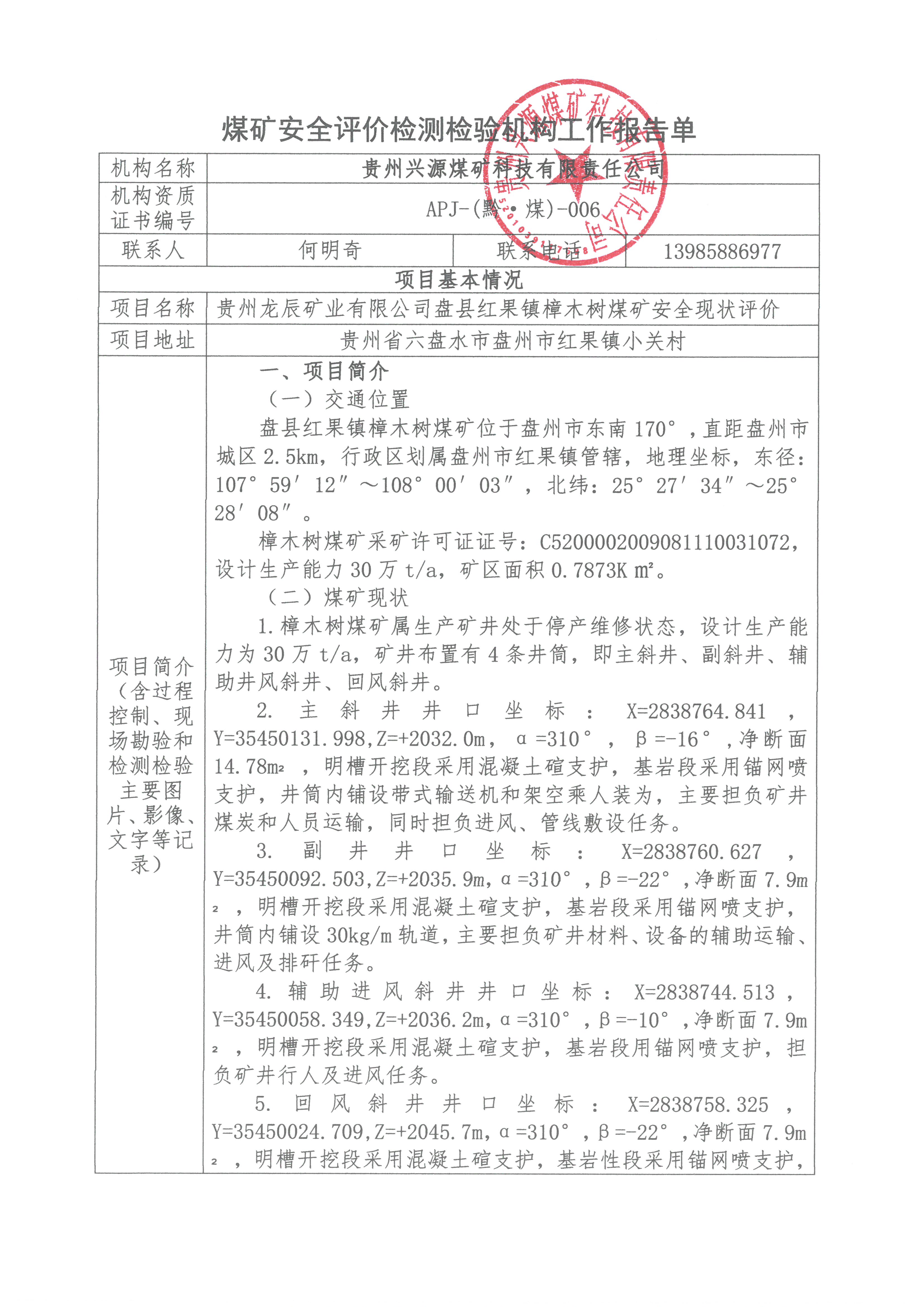 贵州省通林矿业投资股份有限公司六盘水市钟山区镇艺煤矿安全现状评价网上公开信息表